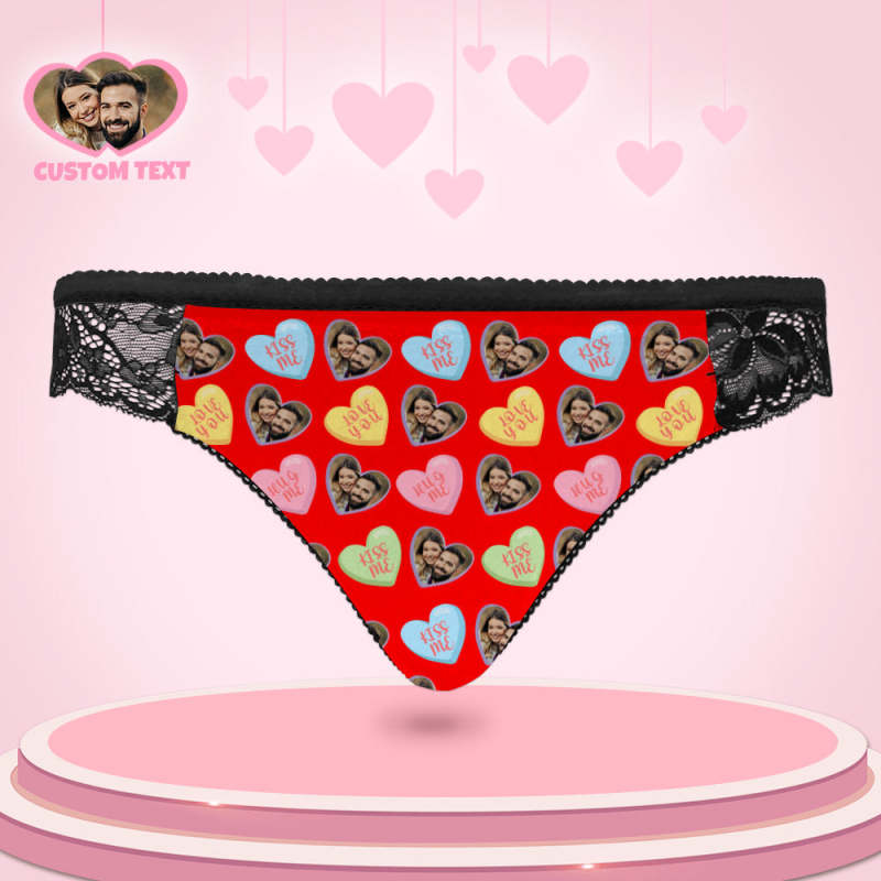 Custom Women Lace Panty Heart Face Sexy Panties Sweet Gift