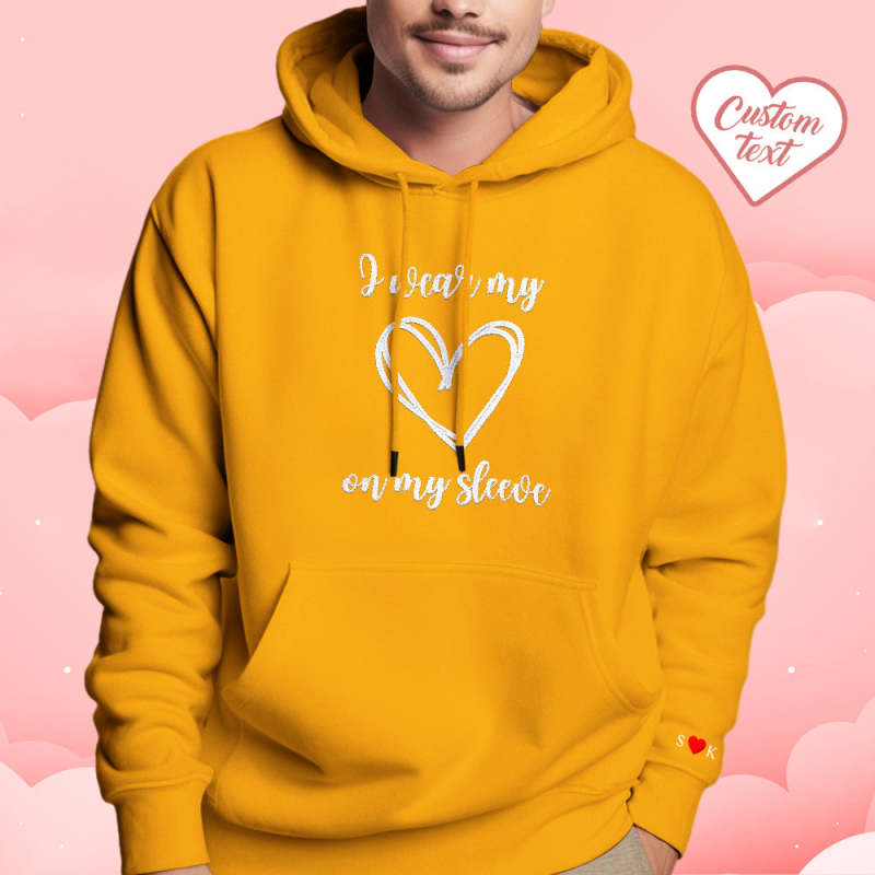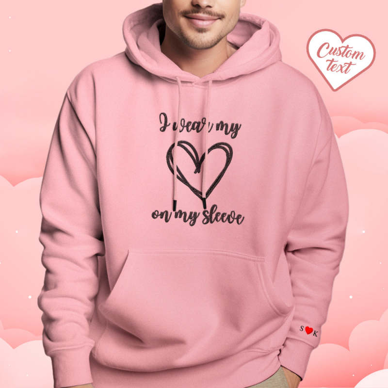 Personalized Embroidered Love Heart Hoodie Custom Text Sweatshirt Valentine Gift