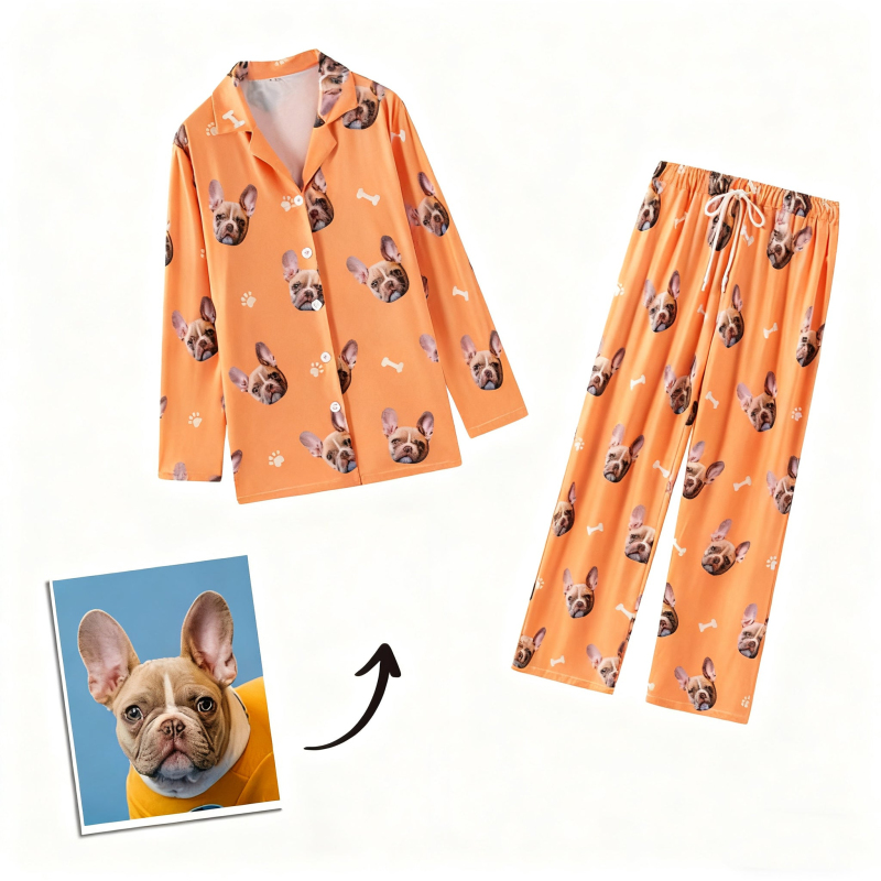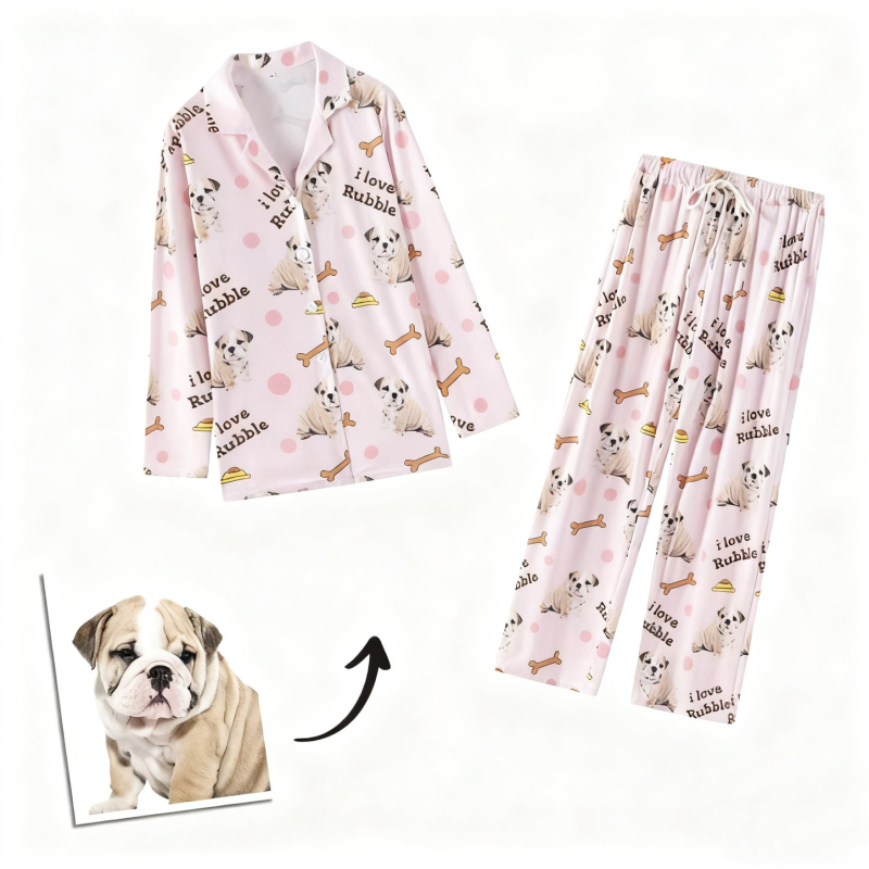 Personalized Family Pajamas, Dog Portrait, Pet Lover Gift, Long Pajamas Women, Pet Photo Pajamas, Memorial Gift, Gift for Her