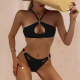 Sexy Solid Color Low Waist Split Bikini Back Button Sswimsuit