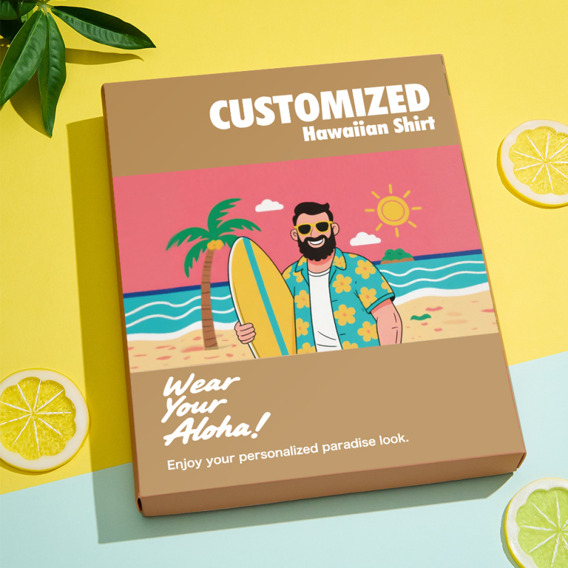 Make your Hawaiian shirt extra special with our vibrant, beach-style packaging