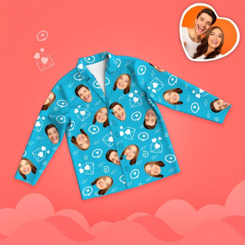 Custom Face Love And Message Printed Long Sleeve Pajamas